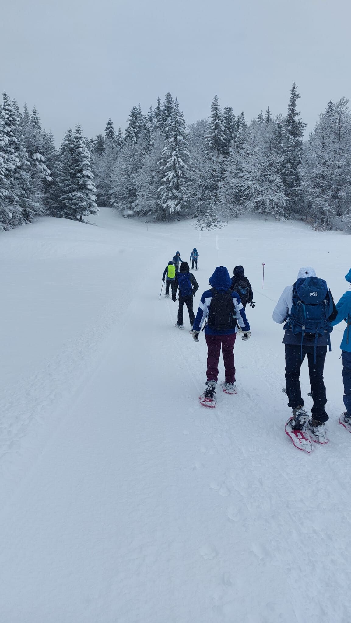 Week-end raquettes mars 2025 avec trace de loup . L'animateur veille sur le tr..............bon déroulement de la rando
